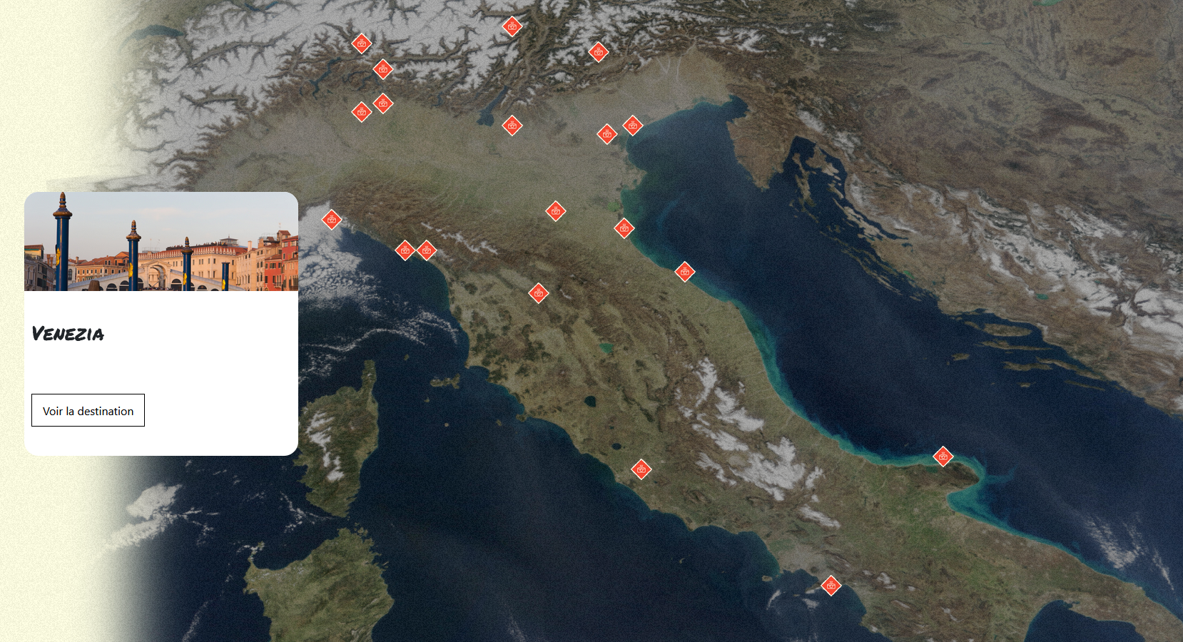 Le but de ce projet était de partager mes expériences et de rendre hommage à la beauté de l’Italie en créant un site Web qui présente des photographies et des anecdotes personnelles du voyage. J’ai utilisé three.js pour créer une carte de l’Italie avec un relief 3D réaliste et des marqueurs placés aux différentes destinations que nous avons visitées. Lorsqu’un utilisateur clique sur un marqueur, il est dirigé vers une page contenant des photos et du texte décrivant nos expériences à cet endroit précis.